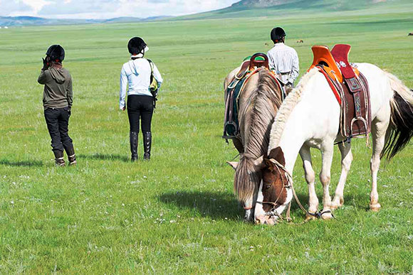 8. 初心者からマスターまで楽しめるツーリストキャンプゲル泊の乗馬ライディング。
