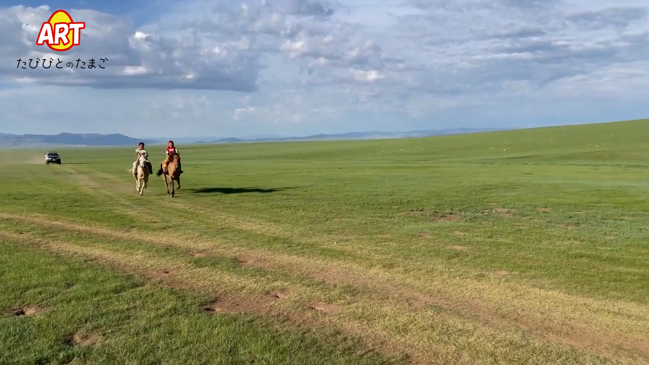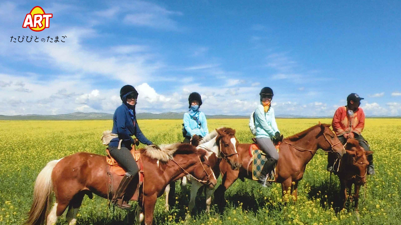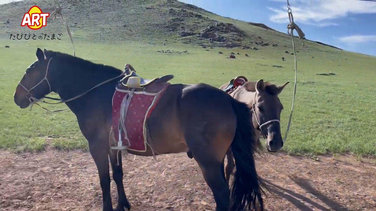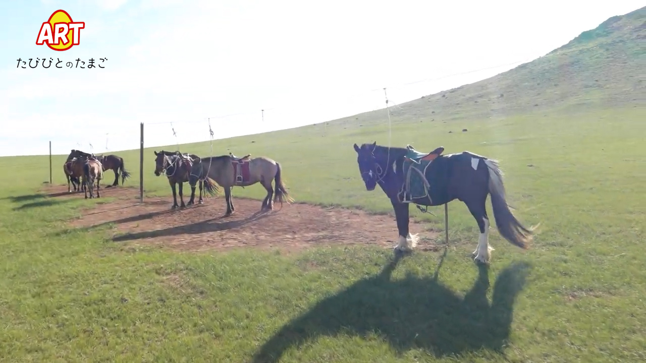 『馬に乗りましょう!』という騎乗の際の掛け声です。乗馬に最適な大草原で 『さあ、モリンドー!』 馬に乗りましょう。