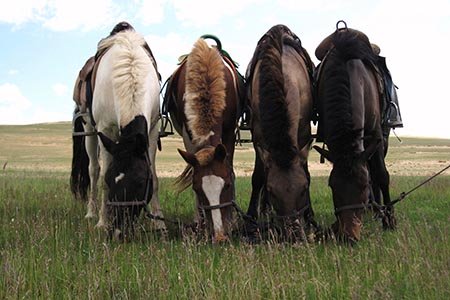 大草原の母岩エイッチェハットへ向けて遊牧民と馬とともに乗馬ライディング・ロードへ出発。