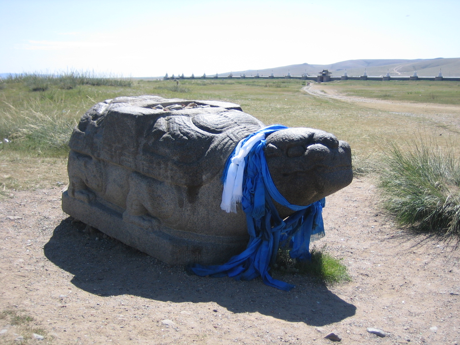 かつて世界の中心地となった都の跡地に、今も108の仏塔に囲まれるエルデニ・ゾー寺院を見学します。花崗岩の亀石(亀跌)も見学。