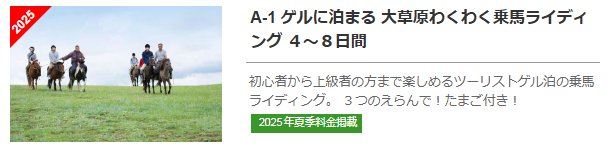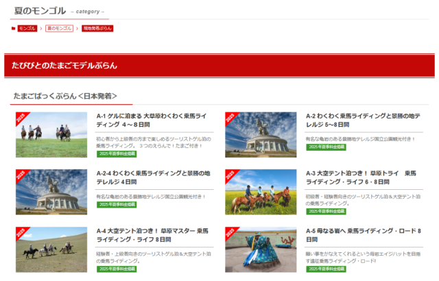 夏のモンゴル旅行ぷらんの一覧はこちらからご覧いただけます。